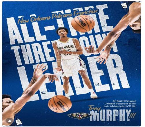加冕鹈鹕队史三分王!25岁墨菲超越CJ赛后感谢前队友教我太多