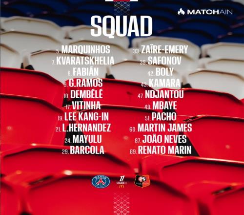 巴黎和雷恩的战斗阵容来了登贝莱和K77领衔出战贝拉尔多和扎巴尔尼缺席出局_法甲直播