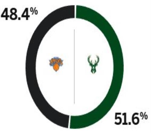 赛前,美媒ESPN预测本场比赛,尼克斯胜率为48.4%,雄鹿胜率为51.6%。