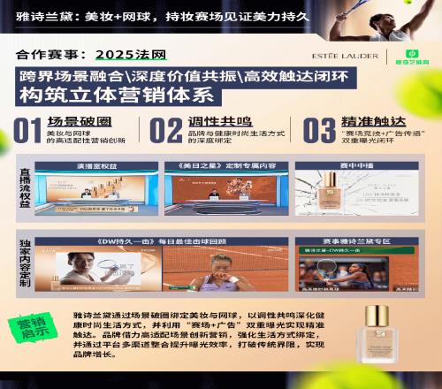 - 美妆 × 运动场景融合:为雅诗兰黛、兰蔻定制演播室权益、定制内容,打造“场景适配+IP绑定”方案,开辟美妆体育营销新赛道。