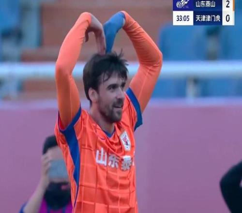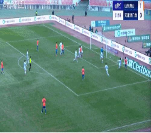第32分钟,谢文能右路底线附近传门前助攻,泽卡头球再下一城,泰山2-0领先!
