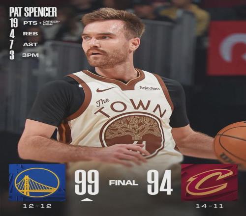 后场无人可用的情况下,勇士将双向球员斯潘塞调入首发阵容,这是后者NBA生涯至今第一次首发出战。