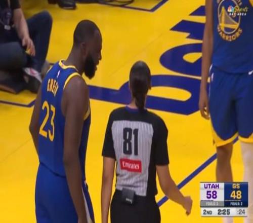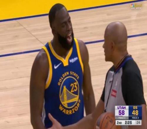 在比赛进行到第二节末端时,爵士前锋马尔卡宁突入篮下双手暴扣,随后勇士内线追梦格林对阵底线的女裁判喋喋不休,连续吃到两次技术犯规被驱逐离场。