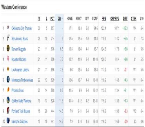 此役后勇士19胜17负继续排西部第八的位置,他们距离西部第六的森林狼还有3.5个胜场差距较大。