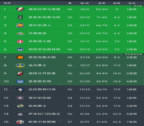 西部最新积分榜