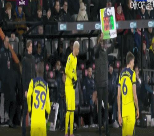 第67分钟,里沙利松登场,穆阿尼下