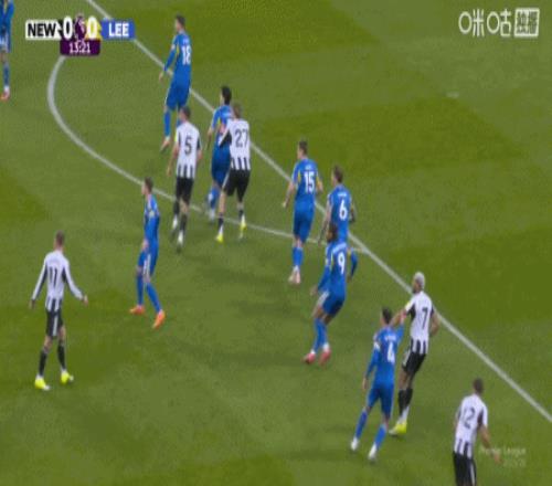 第54分钟,吉马良斯传中,乔林顿甩头攻门扳平比分,纽卡2-2利兹联