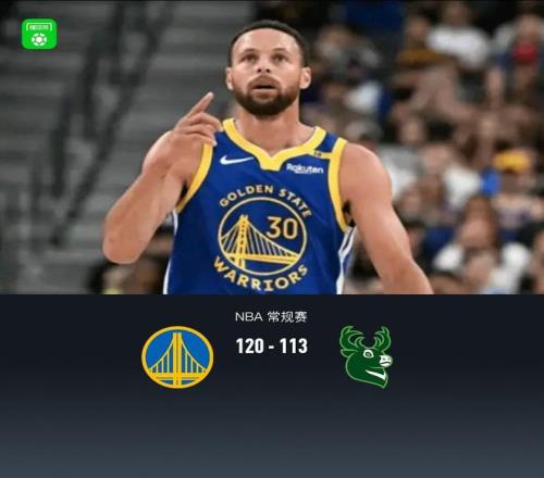第四节,前半节双方拉锯,勇士维持两位数领先,来到后半节勇士连续尝试三分不中,雄鹿先是依靠波特、字母哥得分,紧跟AJ格林三分命中追至7分,比赛还剩2分半钟,短暂拉锯之后,最后阶段,随着库里三分命中彻底杀死悬念,最终勇士120-113战胜雄鹿