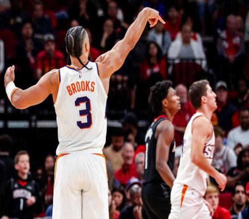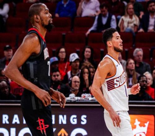 最后时刻,阿门汤普森挺身救主,打进2+1追平比分。随后杜兰特相信阿门,让他去完成反超球。可惜阿门一个漂亮的转身,没有把球扔进篮筐。还好布克也拉胯了,他压时间投三分结果是一个三不沾,火箭直接收下。最后一攻,留给火箭5秒。杜兰特在右侧45度角接球,运两步就是一个熟悉的干拔三分命中,这就是“死神镰刀位”的经典一击,当年在勇士,总决赛连续对詹姆斯完成45度斩杀。时间仅剩1.1秒。太阳最后一攻,奥科吉完成干扰,布克仓促出手不中,火箭惊险取胜。