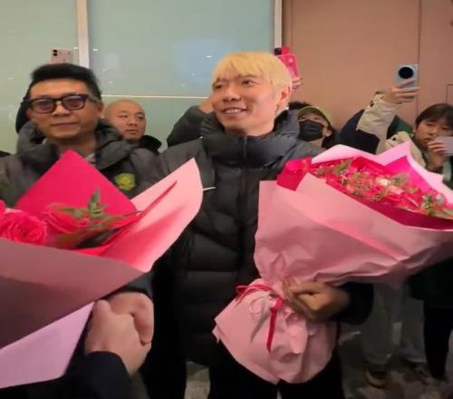 俱乐部方面派出翻译付豪、队员代表张稀哲等人进行接机。从现场画面来看,染着一头黄发的队长张稀哲手为蒙哥马利送上鲜花,两人进行了亲切交流。