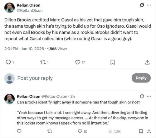 谈及当年为灰熊队效力,狄龙表示是小加索尔成就了自己,当初小加是队内老将,自己则是一名新秀,那时小加甚至连自己的名字都不会叫,这让自己练就了一副“厚脸皮”。